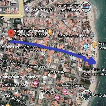 Lejlighed ligger i Porto de Galinhas City-Centre kvarter i Pôrto das Galinhas, 45 minutters kørsel fra Recife lufthavn. Pôrto das Galinhas centrum er næsten 1 km væk. Pizzeria O Fornao Pizzaria kan man nå på 6 minutters gåtur. Det tager ikke lang tid at komme til Coqueiral de Maracaipe i bil.